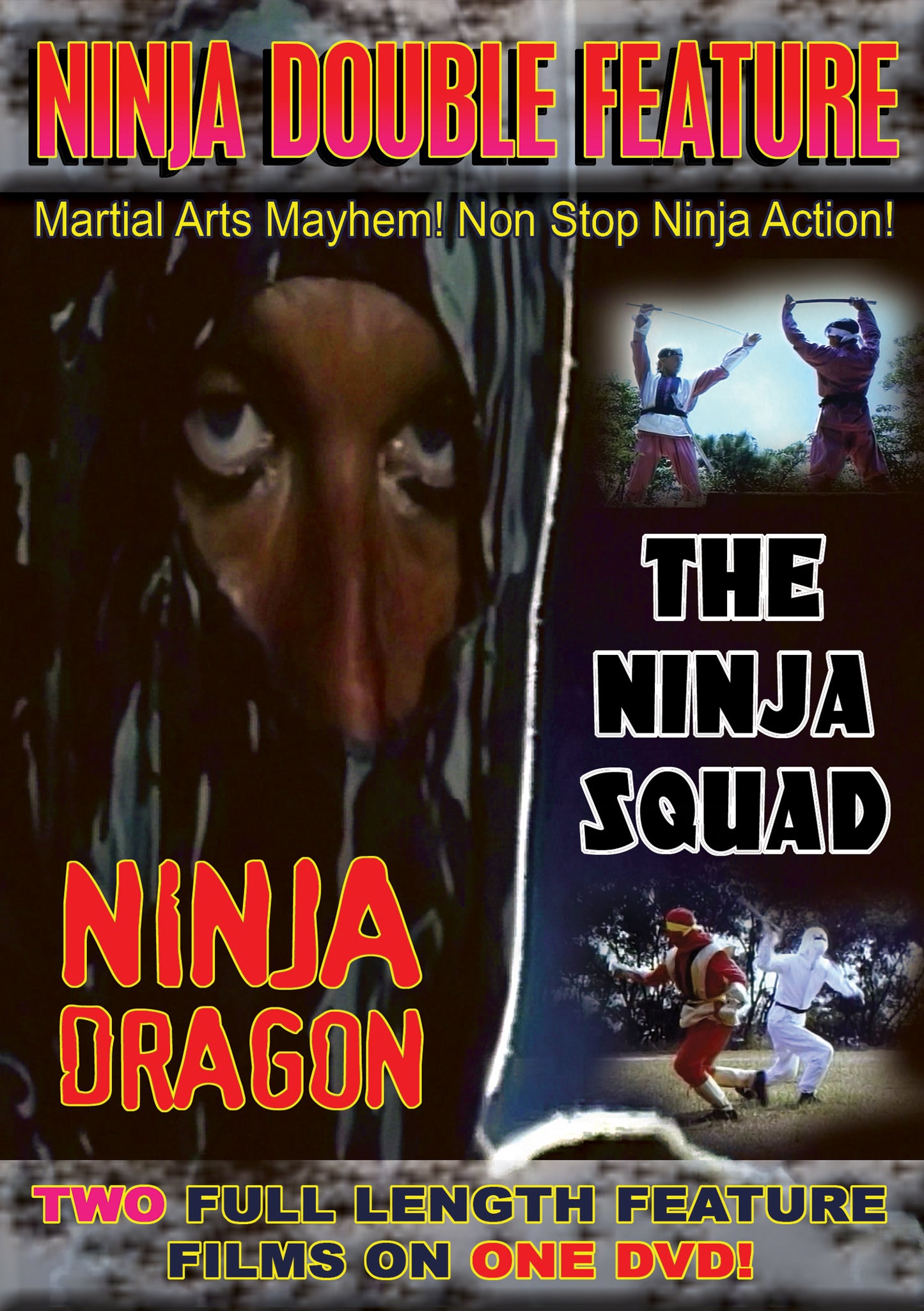 NINJA DRAGON Set in Great Shanghai. The Furious Fox and the Black Eagle, two rival gangs, are fighting to establish domination in the territory. Only one man can stop the mayhem on the Great Shanghai streets...the Ninja Dragon. THE NINJA SQUAD Ninjas are silent assassins from Japan, often hard to spot or stop. They sneak around in the dark, unseen by the human eye. But in this Godfrey Ho movie you can spot them with their purple and red jumpsuits and brightly colored headbands. In the Ninja Squad, the Ninja Empire is at stake from a power-hungry Ninja. A young disciple reveals his fighting ability as he takes on Ivan the Red...