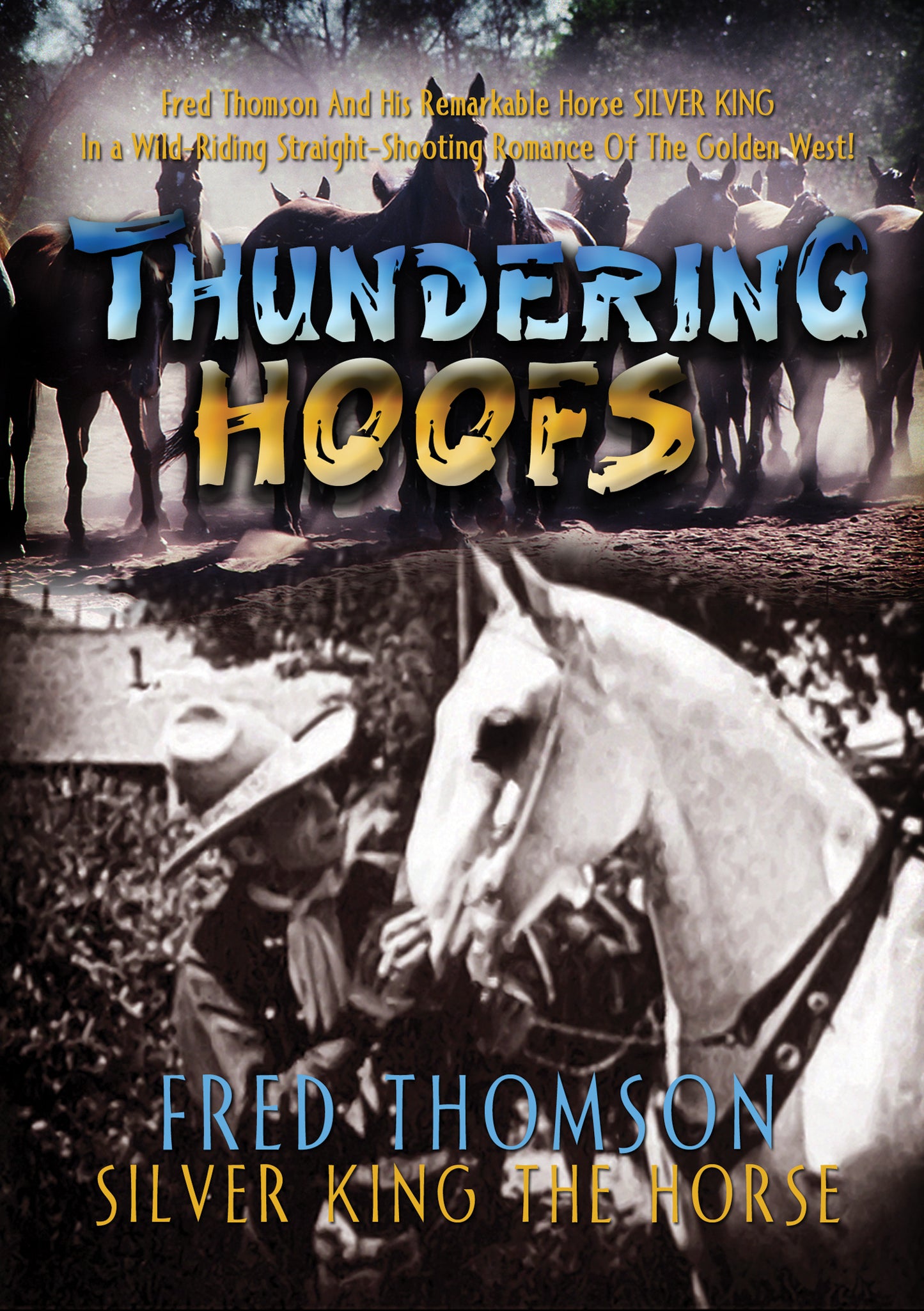 The border bandit Severn is after Estrada's money. He not only gets Estrada to promise his daughter to him in marriage but he also convinces him that Dave Marshall is the bandit. When Dave shows up to expose Severn, he is jailed. In this film Fred performs a dangerous jump from a moving stagecoach to one of the horses pulling the coach. He fell and suffered a compound fracture of his right thigh. Yakima Canutt completed the stunt. Production of the movie was delayed for weeks while Fred recovered from his injury. Frederick Clifton Thomson (February 26, 1890-December 25, 1928) was an American silent film cowboy. He was a natural actor who rivaled Tom Mix in popularity before dying at age 38 of tetanus. Only two of his movies have survived to the present day, but Thundering Hoofs is the only surviving film in which Thomson is the main star.